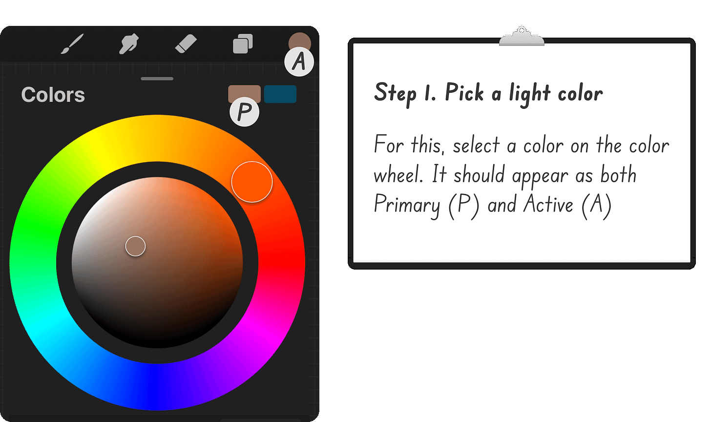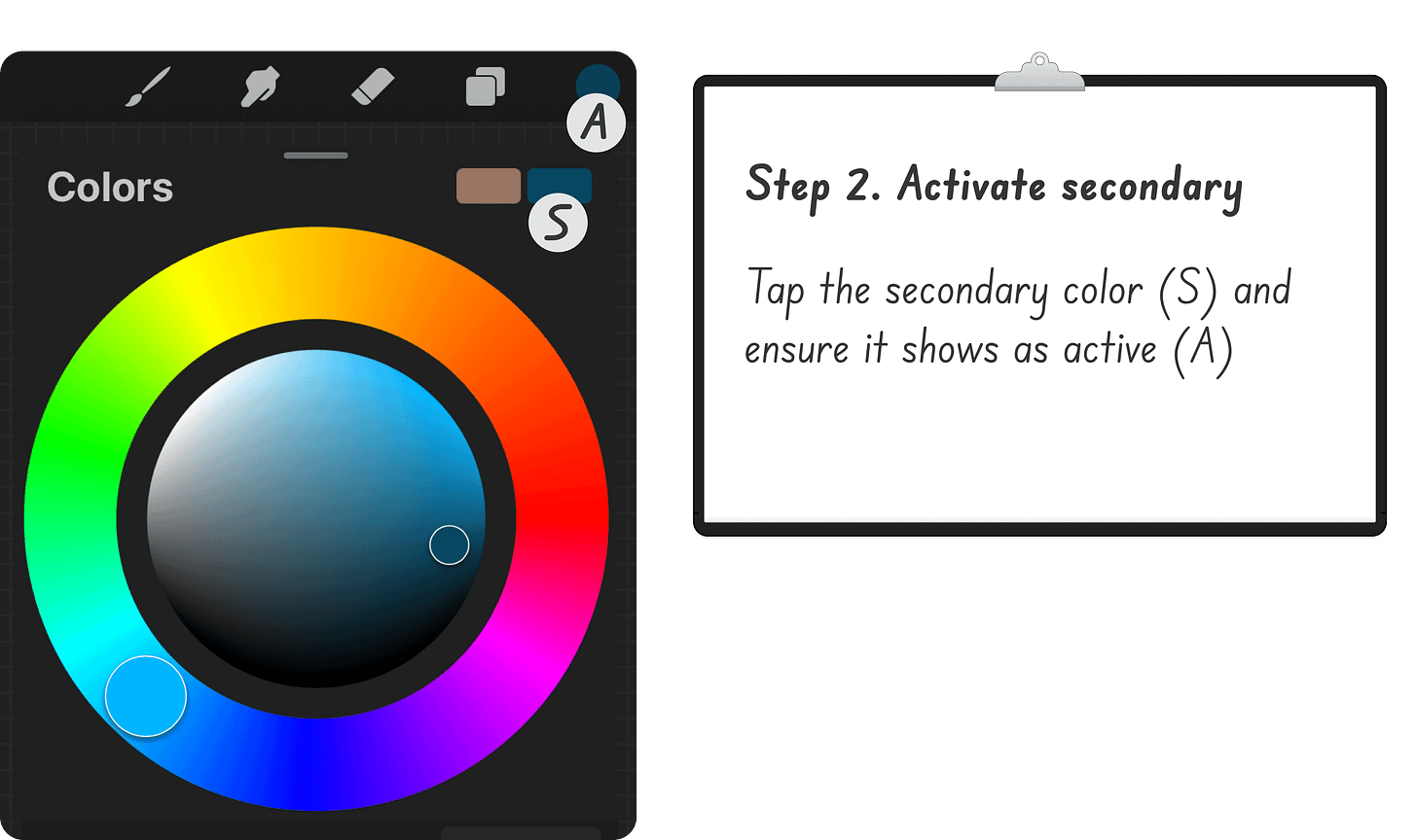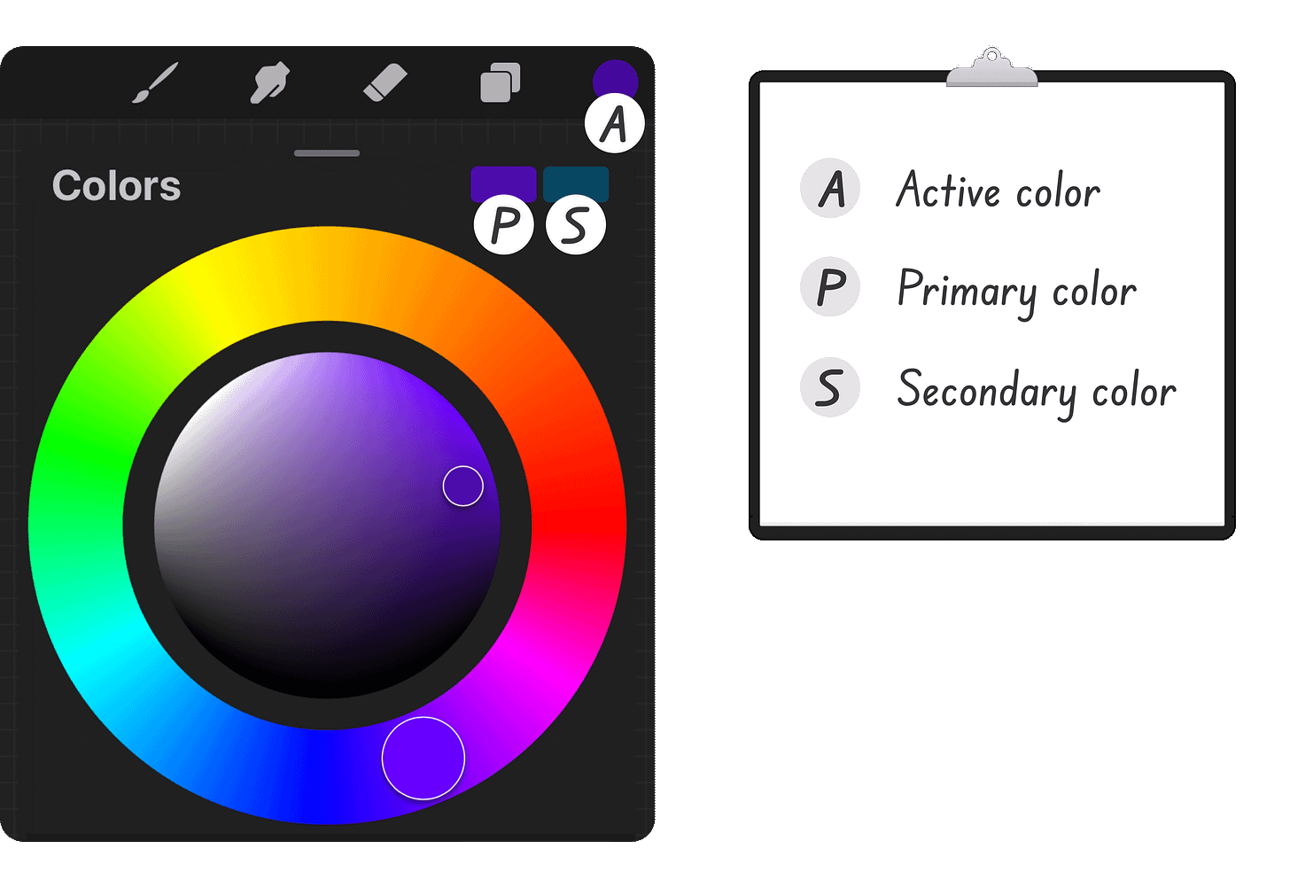 Primary, Secondary, and Active Color in Procreate.