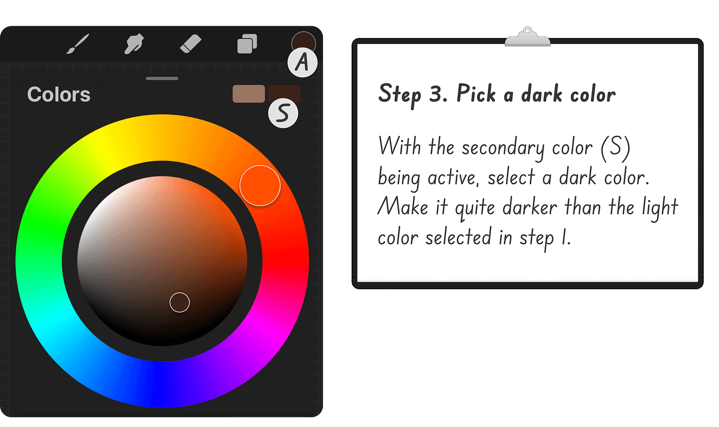 With the secondary color active, choose a shade that is noticeably darker than the light color from Step 1. Now, you have a color pair to work with.