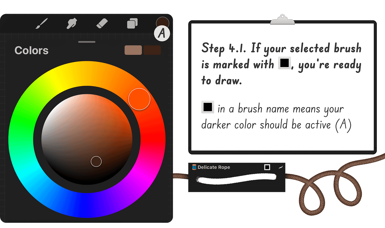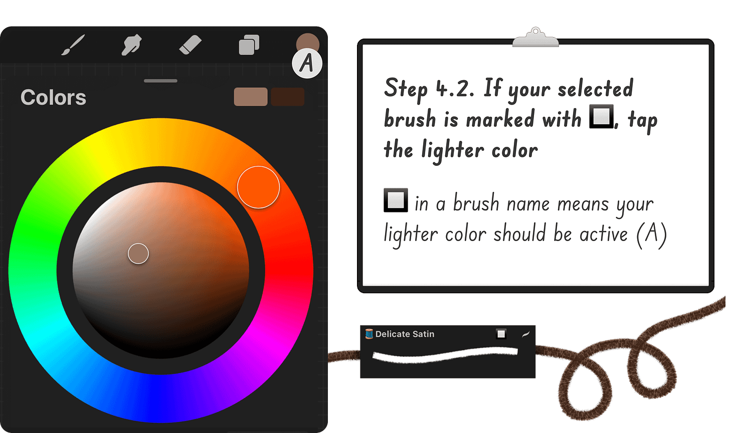 For brushes marked with 🔲, switch to the lighter color by tapping on it.